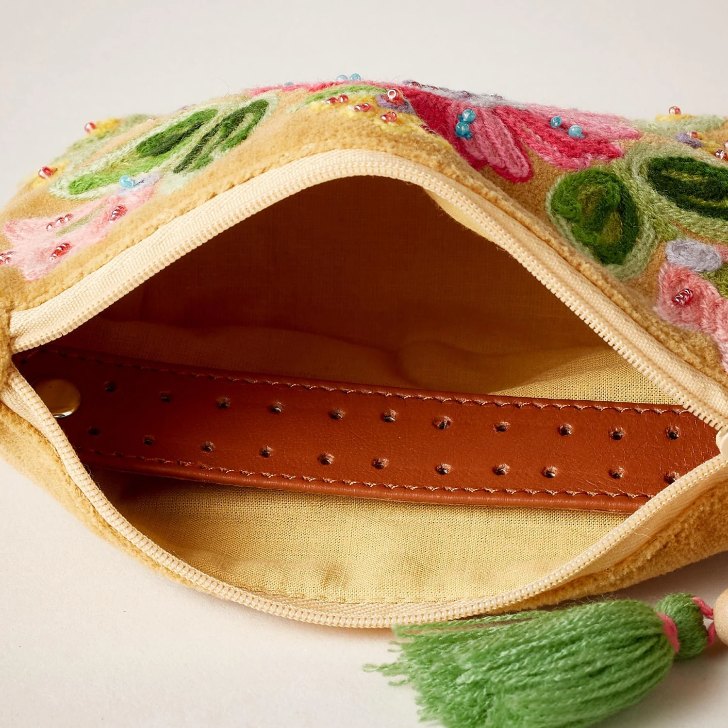 Embroidered with blooms and embellished with beads, our cotton velvet pouches are pretty enough to carry as clutches. A flat bottom accommodates bangles and brooches, while a built-in leather[?] holder keeps earrings organized. Imported. 7-3/4″w x 4-3/4″h.