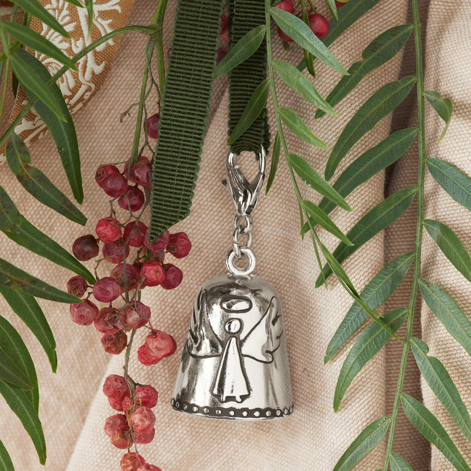 This tiny, silver-colored bell comes in a soft, organza bag with a card that tells the Blessing Bell story. Clip to a purse, keys, or carry in a pocket to bring good luck. Debossed with the words “Someone To Watch Over Me.” Lobster clasp. Zinc alloy. Imported. 2-1/4″L x 1″ dia.