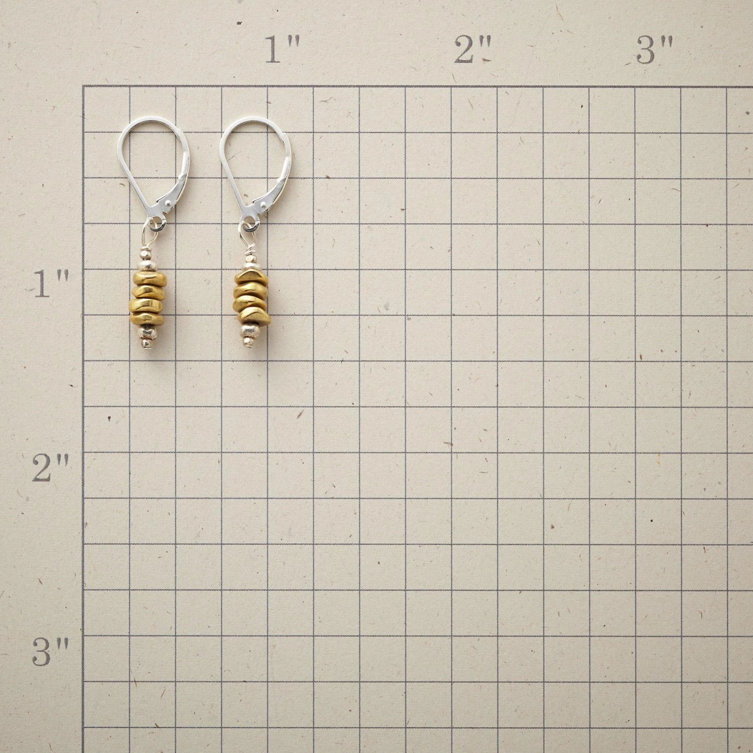 Brass pebbles stacked between sterling beads sway from the lever back wires of our brass and sterling silver bead earrings. Handcrafted in USA exclusively for Sundance. 1-1/4″L.