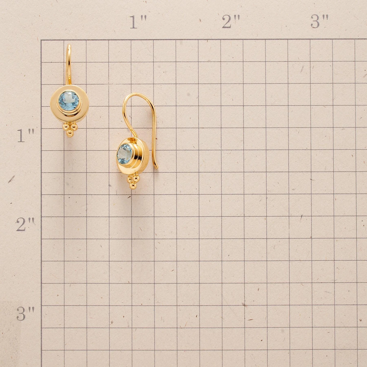 Starburst faceting and window backed bezels bring the beauty of blue topaz to light. Exclusive. Handcrafted in 18kt gold vermeil with granulation bead accents, fixed French wires. 1″L.