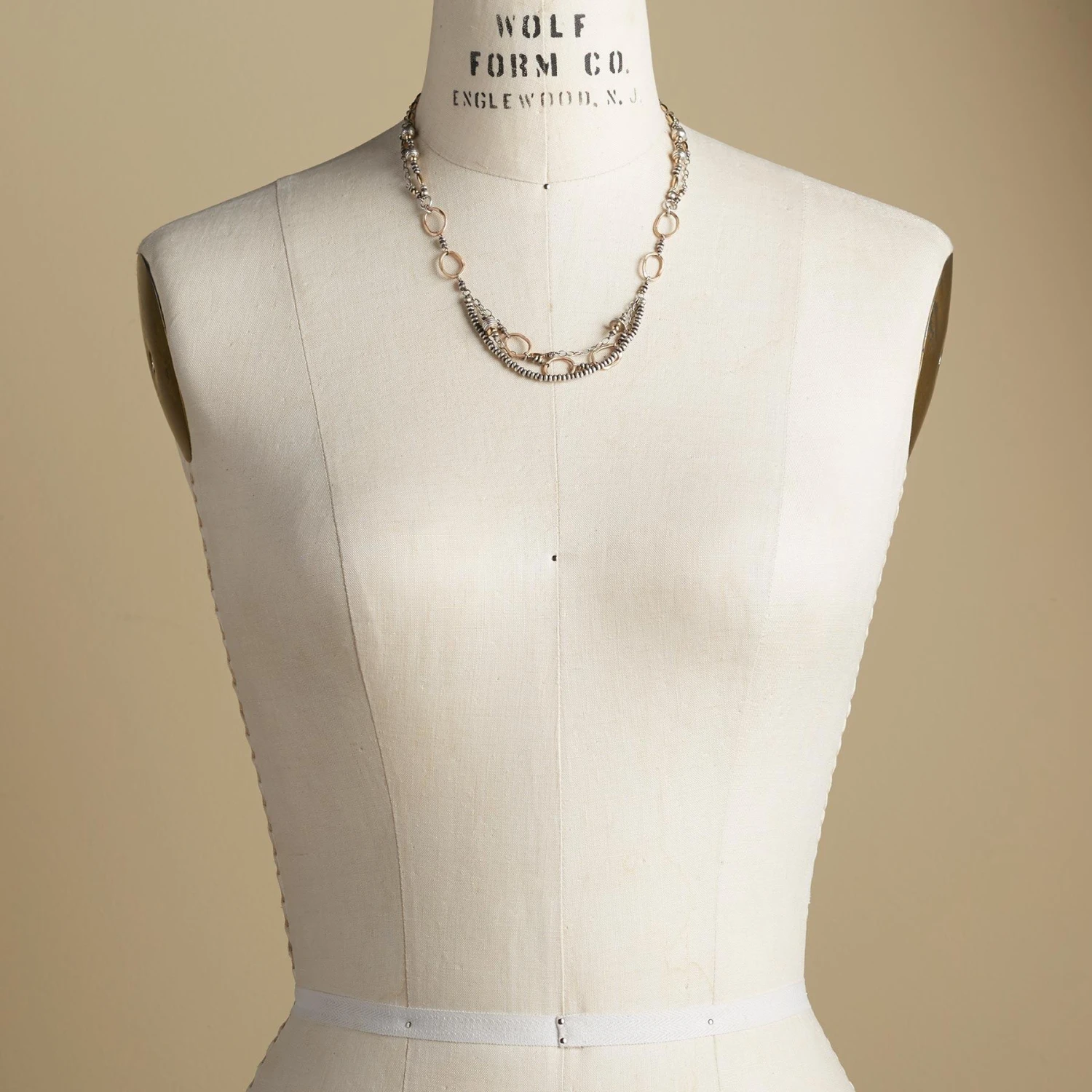 Smart on every level, this necklace complements all with its mix of 14kt gold-filled and sterling silver links, beads and baubles. Sterling silver clasp. USA. Exclusive. 18″-20″l.