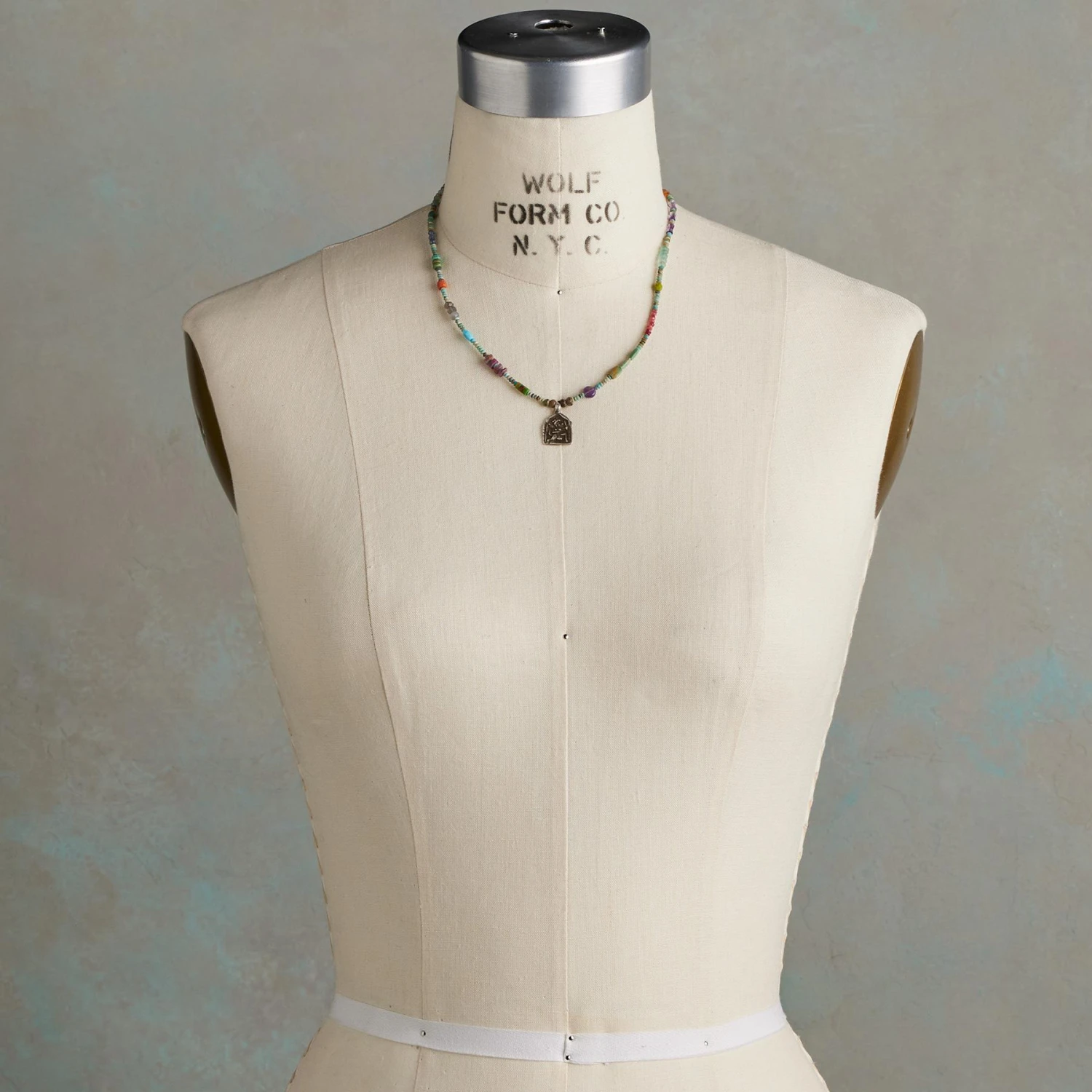 A shower of beauty and light surrounds Hanuman, the Hindu god of loyalty, devotion, strength and courage. Cast of sterling silver, the pendant centers a strand of variegated beads, including amethyst, ruby, stabilized turquoise, Czech crystal, aquamarine, tinted jade, Roman glass, carnelian and more. Sterling lobster clasp. Handcrafted in USA. Exclusive. 16-1/2″ to 18″L.