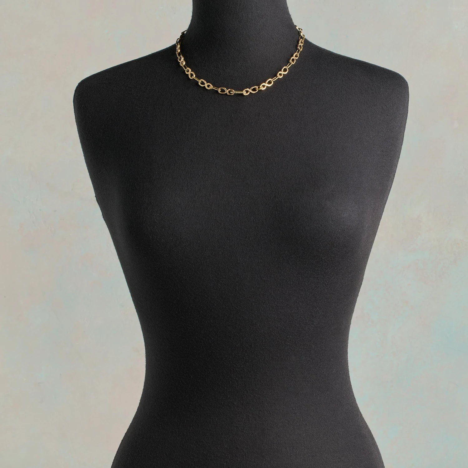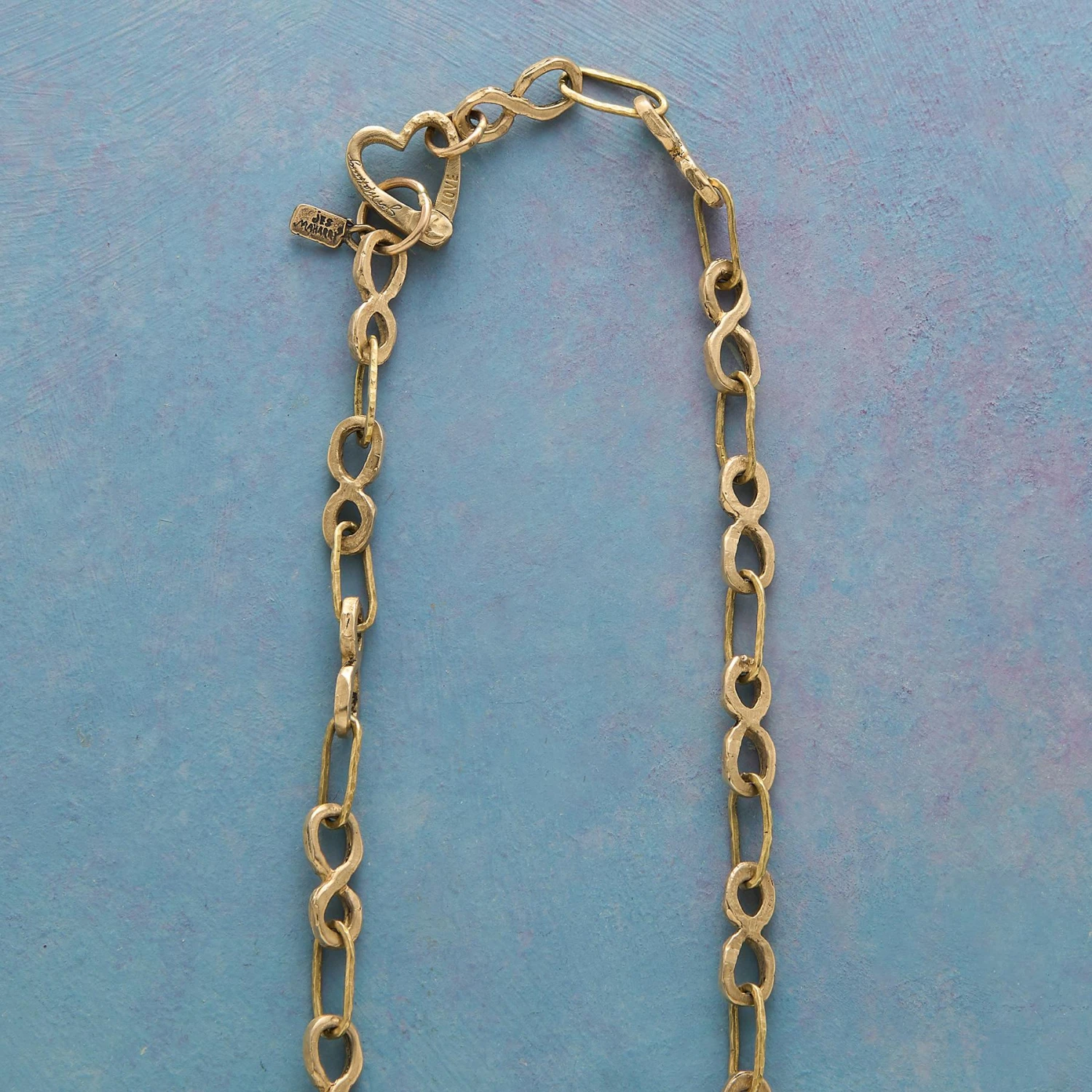 Forevermore, this handmade necklace by Jes MaHarry will remain a treasured favorite. The necklace’s 18kt gold links join with 14kt gold infinity links and are centered by a 18kt gold link dotted with diamonds all around. A 14kt yellow gold heart clasp fastens the necklace. Handmade in the USA. Exclusive. 28″l, Infinity links 5/8″l.