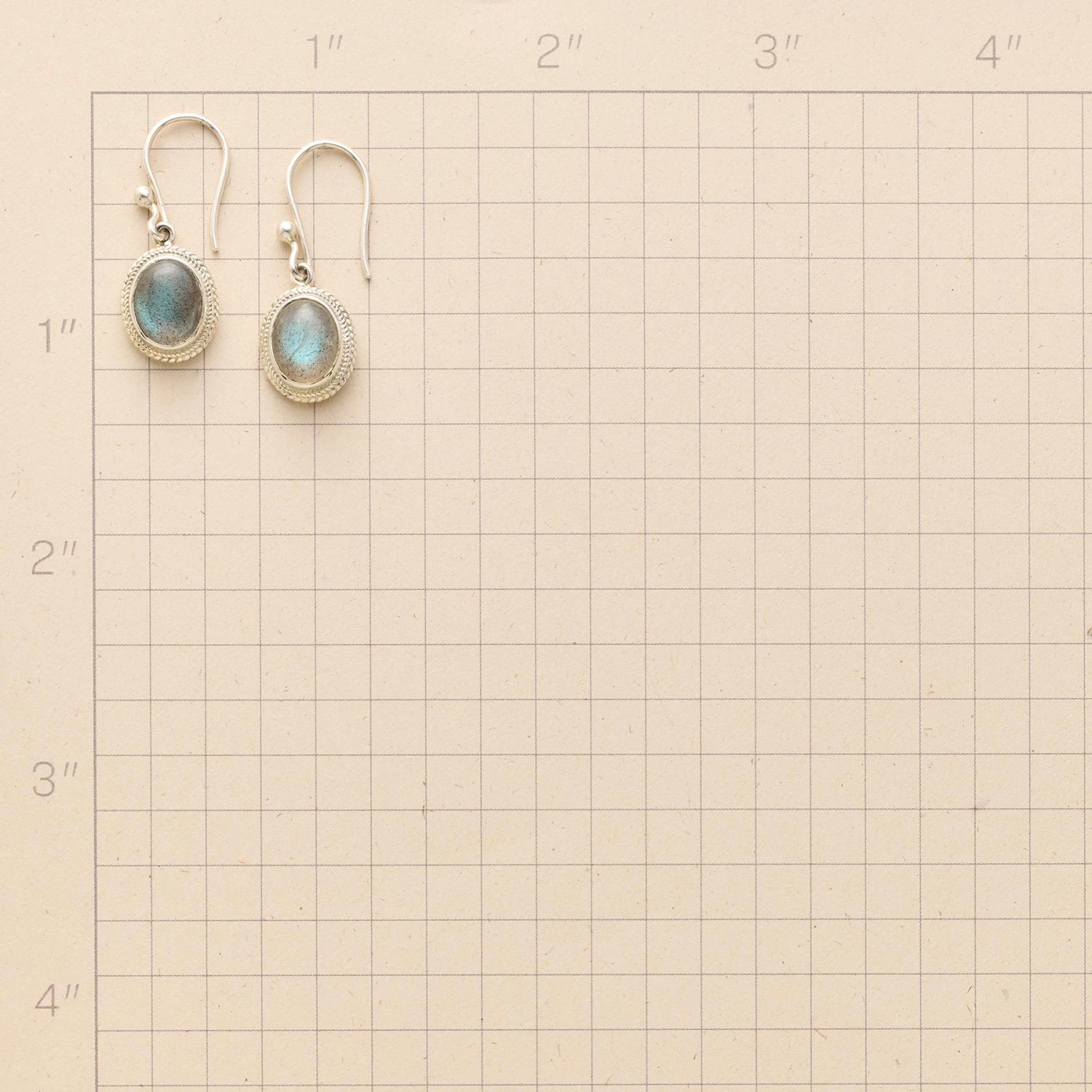 Delicately roped window settings let light shine through our labradorite cabochons, the better to reveal the gems’ colorful iridescence. Handcrafted of sterling silver; French wires. Exclusive. 1-1/4″L.