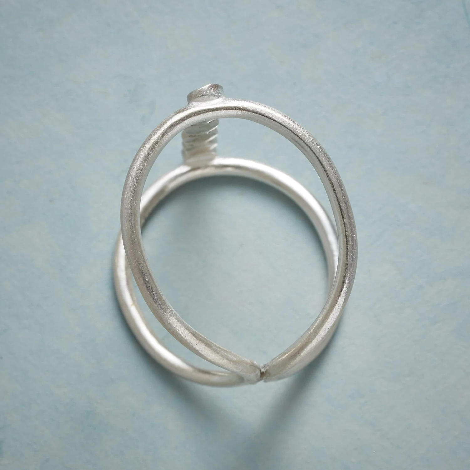 From new moon to waning crescent, the eight phases of the lunar month are rendered in sterling silver. The elliptical band curves round the finger to join up in back. Exclusive. 3/4″ at widest point. Whole sizes 5 to 9.