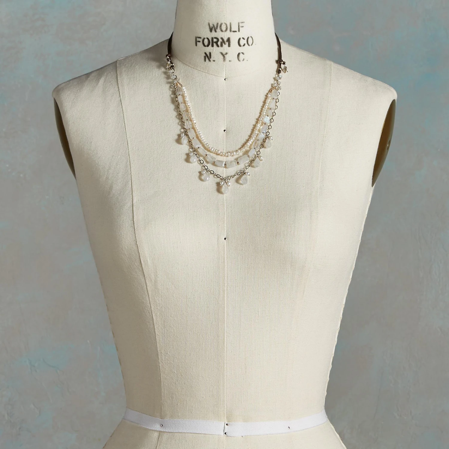 Sterling silver, moonstone and cultured pearl echo moonlight’s magic. With 14kt gold-filled beads; leather cord. Exclusive. Length adjusts from 18″ to 26″L.