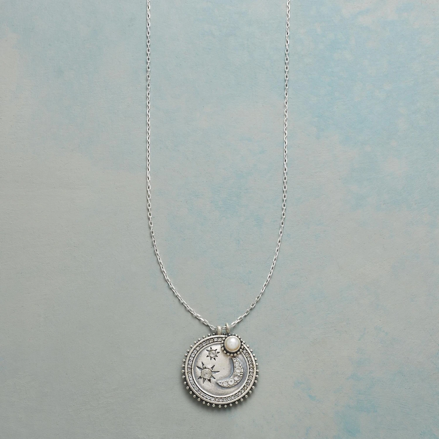 Give her the moon and the stars with a handcrafted necklace on which sparkling white topaz and a luminous freshwater pearl light up the heavens. Spring ring clasp. Exclusive. 18″L.