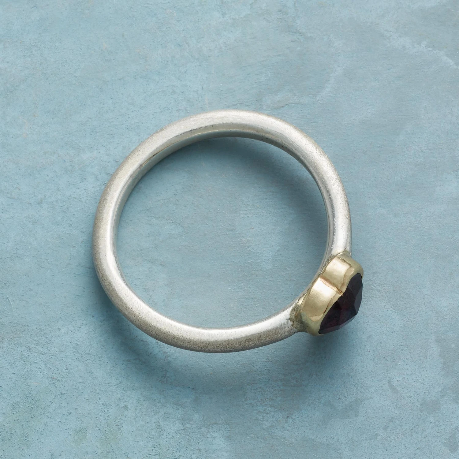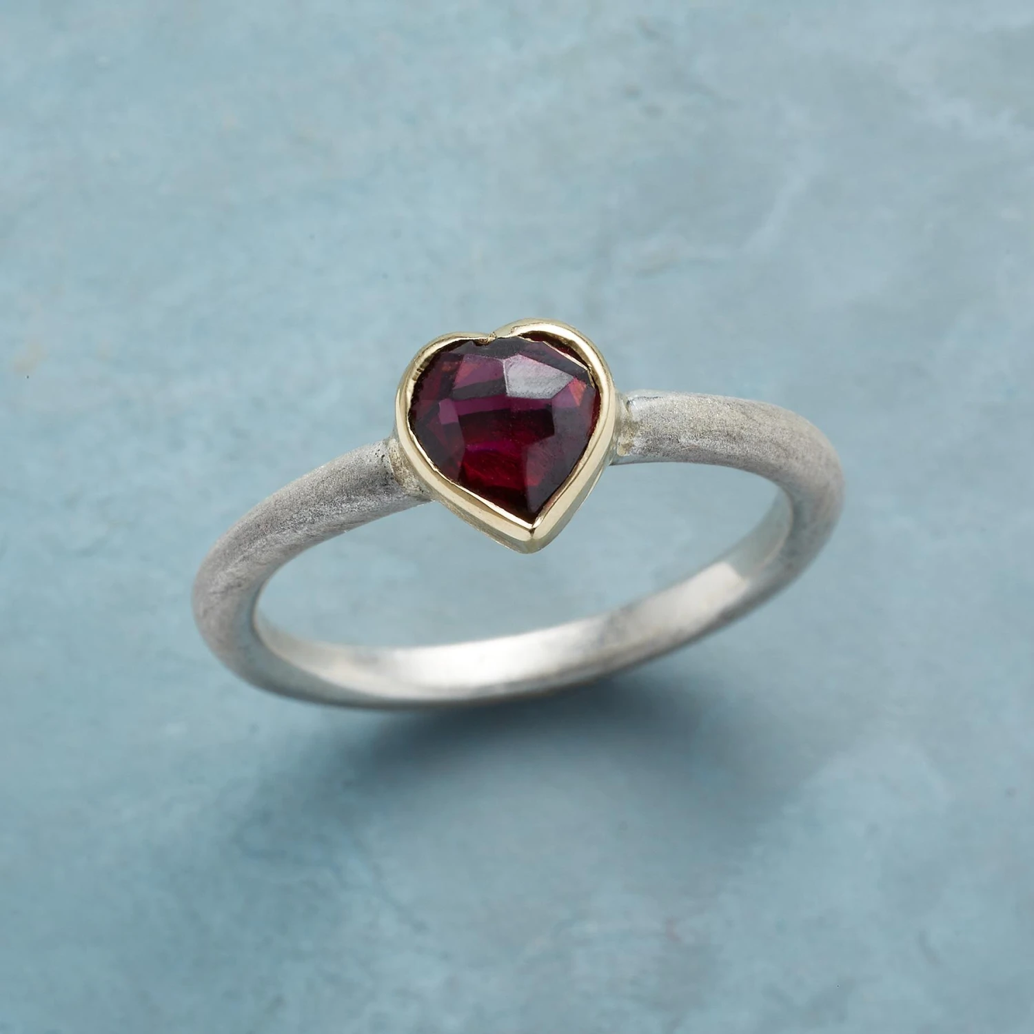 The passionate red of faceted garnet glows in this handcrafted sterling silver and 14kt gold ring. Made in Israel. Exclusive. Whole sizes 5 to 9.