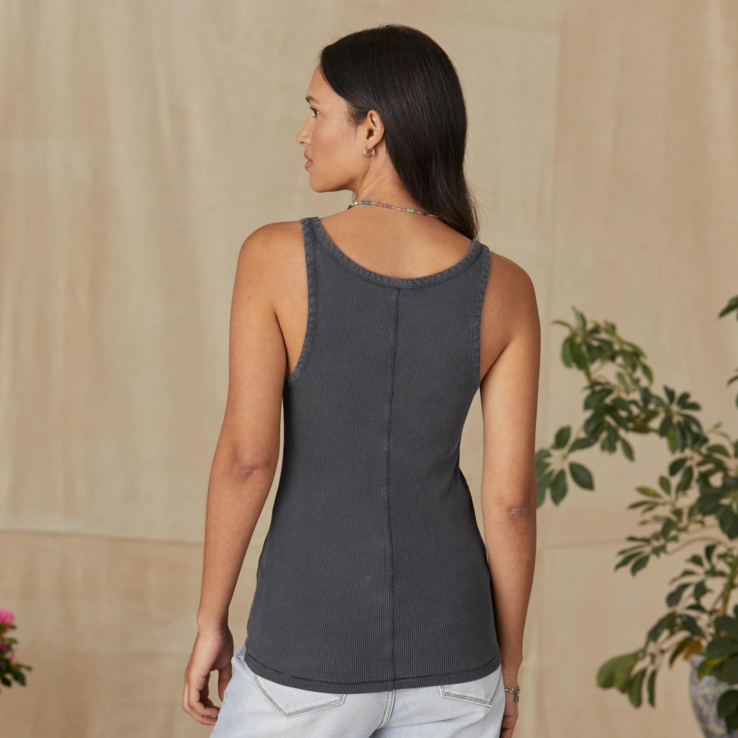 Our easy, elevated ribbed tank is vintage washed with pick stitching at the hem and center back seam detail. Cotton. Machine wash. Portugal. Exclusive. Sizes XS (0–2), S (4–6), M (8–10), L (12–14), XL (16–18), XXL (20–22). Approx. 25-1/2″l.